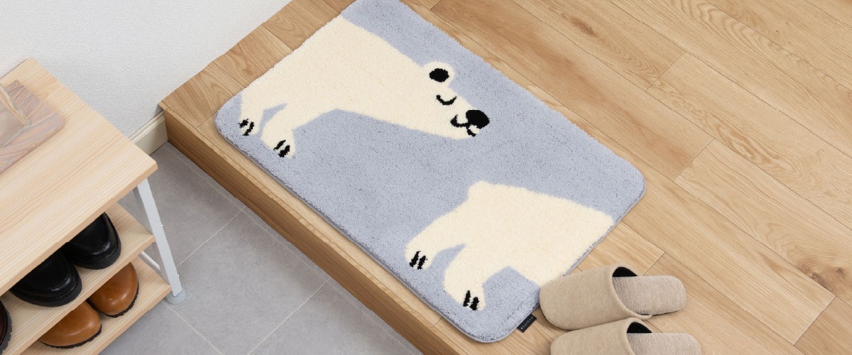 HAUSKA インテリアマット 約45×70cm シロクマ(グレー)/イヌ(ブルー)/ミニョン(アイボリー)/プランタン(グリーン)