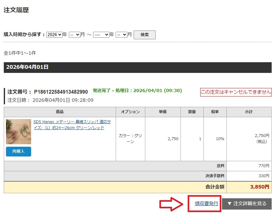 ※領収書のダウンロードは、出荷完了以降可能になります。